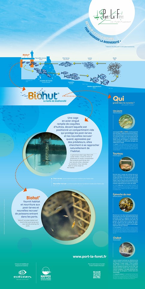 Port-La-Forêt, a rejoint le programme BIOHUT initié par ECOCEAN, afin de valoriser et faire découvrir la richesse des eaux portuaires. Un diagnostic a été réalisé après une expertise réalisée sur l’ensemble du port le 25 juillet 2018.