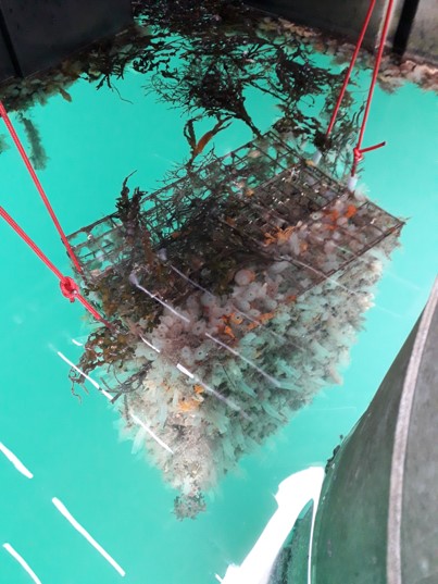 Lors du 1er suivi écologique du 25 avril 2019, chaque module a été observé durant 3 minutes selon un protocole spécifique par des plongeurs scientifique de l’IUT de Quimper. Ils ont pu observer autour des Biohuts : de très jeunes Lieu Jaune et Bars de 4cm, des Mulets, des bancs d’Athérine, des crénilabre