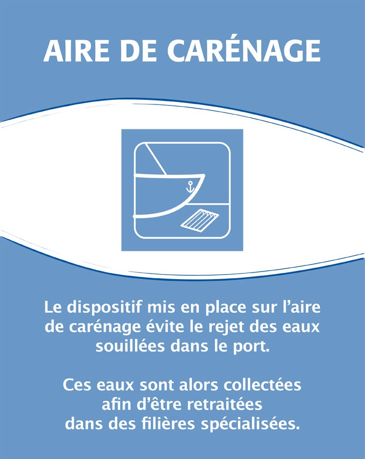 Aires de carénages équipées d'un système de récupération et de traitements des eaux usées.