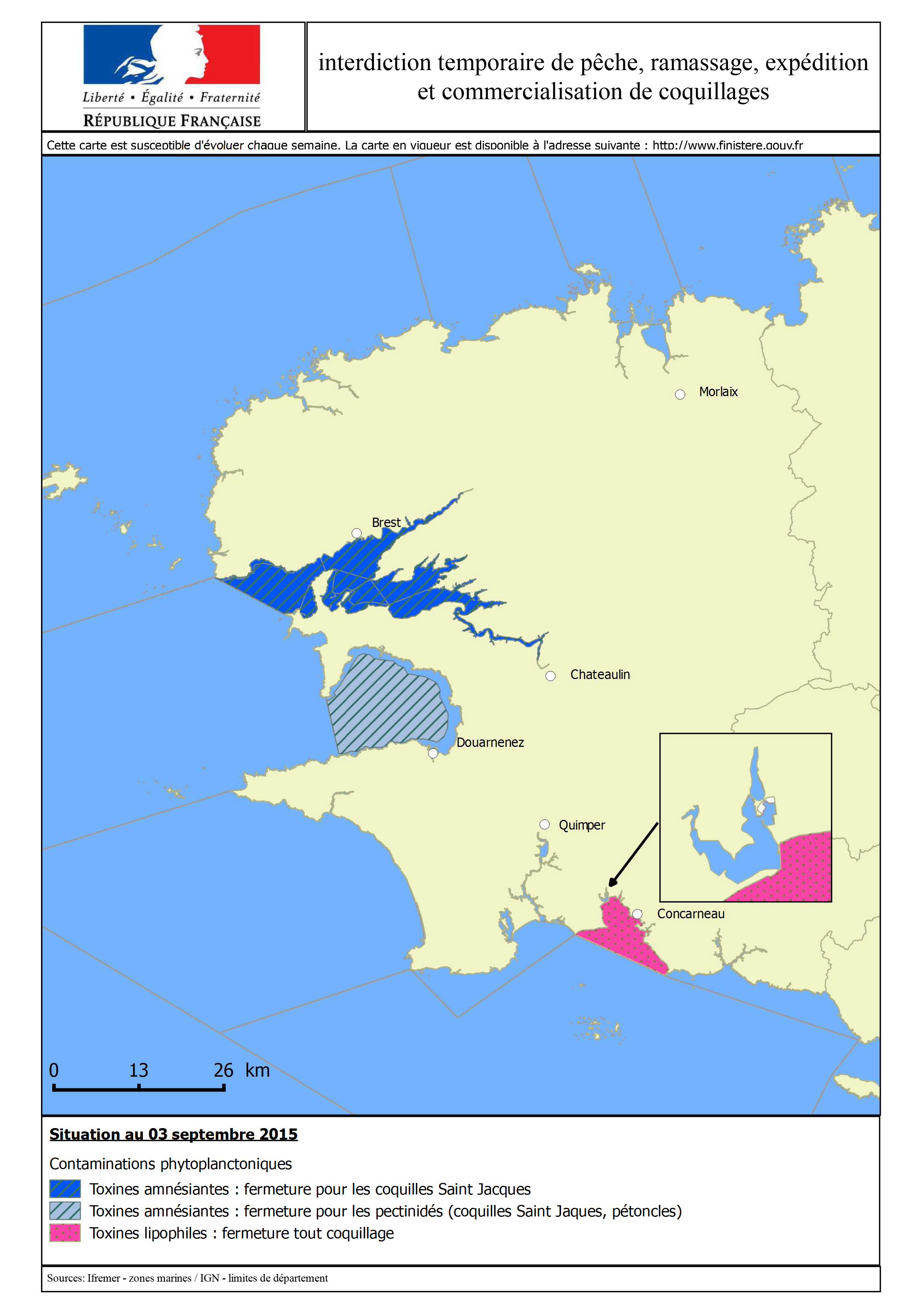 les moules (réseau de surveillance phytoplanctonique), le Préfet du Finistère a décidé d’interdire