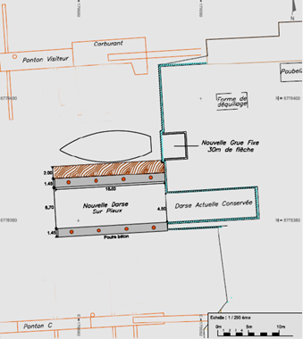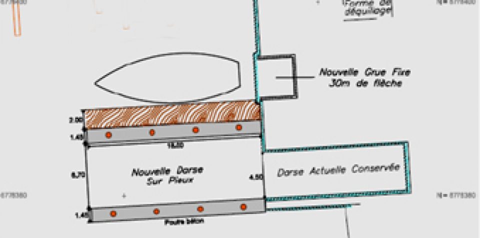 MODERNISE SES OUTILS DE MANUTENTION :- Création d’une nouvelle darse élévateur sur pieux, d’une largeur utile de 7 mètres, opérationnelle début mars ; - Acquisition d’un élévateur de 75 tonnes mis en service fin avril, (en complément de l’actuel élévateur de 25 tonnes qui continuera à évoluer sur l’ancienne darse) ; - Acquisition d’une remorque automotrice à capacité variable 40 à 70 tonnes afin de transporter les navires vers les chantiers du port ; - Acquisition d’une nouvelle grue fixe à flèche télescopique de 30m et d’une capacité de 3 tonnes à 20 mètres, opérationnelle fin mars 2015.