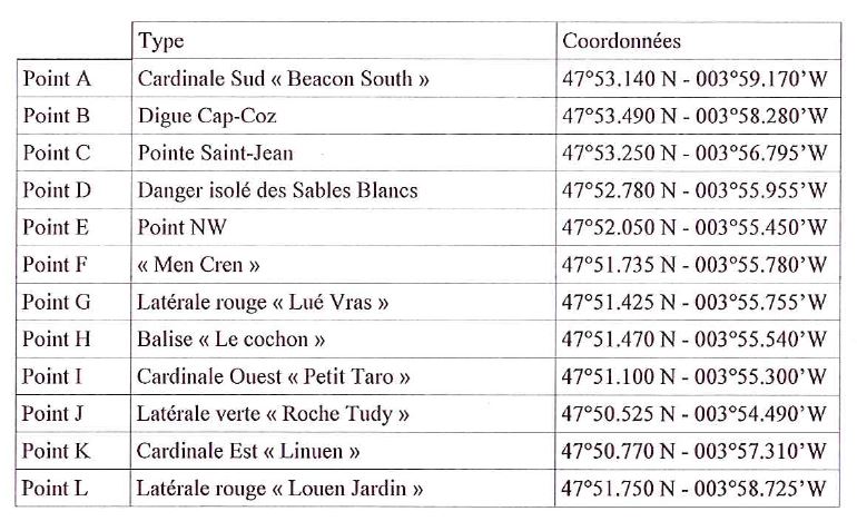 la zone est delemitée par les points suivants :